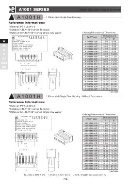 *Mates with H.R A1001 series single row Wafer PART NO. Dimensions